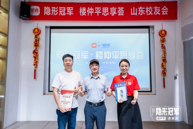 交流會現(xiàn)場,燴道創(chuàng)始人朱濤和運營總經(jīng)理吳春云接過“隱形冠軍·樓仲平思享薈優(yōu)秀研學(xué)基地”榮譽證書,樓仲平老師還為其贈書,祝愿燴道穿越周期、基業(yè)長青!
