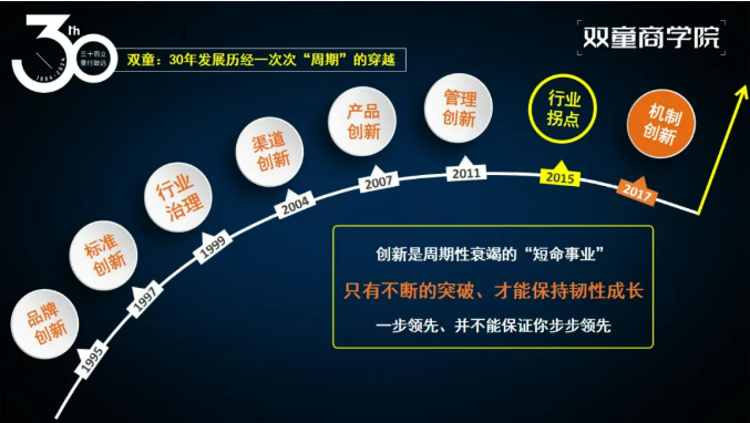 企業(yè)成長的背后是創(chuàng)業(yè)者的持續(xù)成長,雙童能夠一次次成功穿越周期的背后,正是創(chuàng)始人樓仲平個人持續(xù)成長、自我進(jìn)化、行知合一的結(jié)果!所以每次的分享中,他都將自己47年的持續(xù)成長歷程作為第一篇章內(nèi)容。