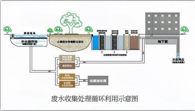從結(jié)構(gòu)上看,該景觀池采用分層式設(shè)計:上層為1米多深的生態(tài)觀賞區(qū),供人觀賞與休憩;下層則是深達4.5米的中水儲水池,承擔(dān)著廢水儲存與再利用的重任,默默履行著水循環(huán)利用的重要使命。這種創(chuàng)新的雙層結(jié)構(gòu),既確保了景觀效果,又實現(xiàn)了水資源的最大化利用。