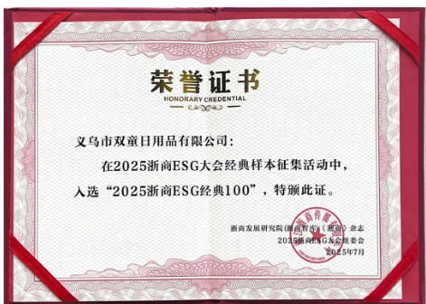 7月30日,2025浙商ESG大會上隆重發(fā)布“2025浙商ESG經典100”,其中,雙童再次憑借在ESG領域取得的卓越表現(xiàn)成功入圍!