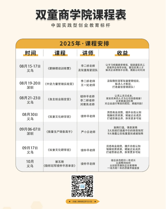 迄今,該課程體系已惠及并深度影響超過(guò)3000家企業(yè),不僅實(shí)證了“自主創(chuàng)業(yè)裂變機(jī)制”理念的科學(xué)性與實(shí)效性,更為推動(dòng)構(gòu)建“雙童式”共同富裕新范式奠定了堅(jiān)實(shí)的示范基礎(chǔ)。