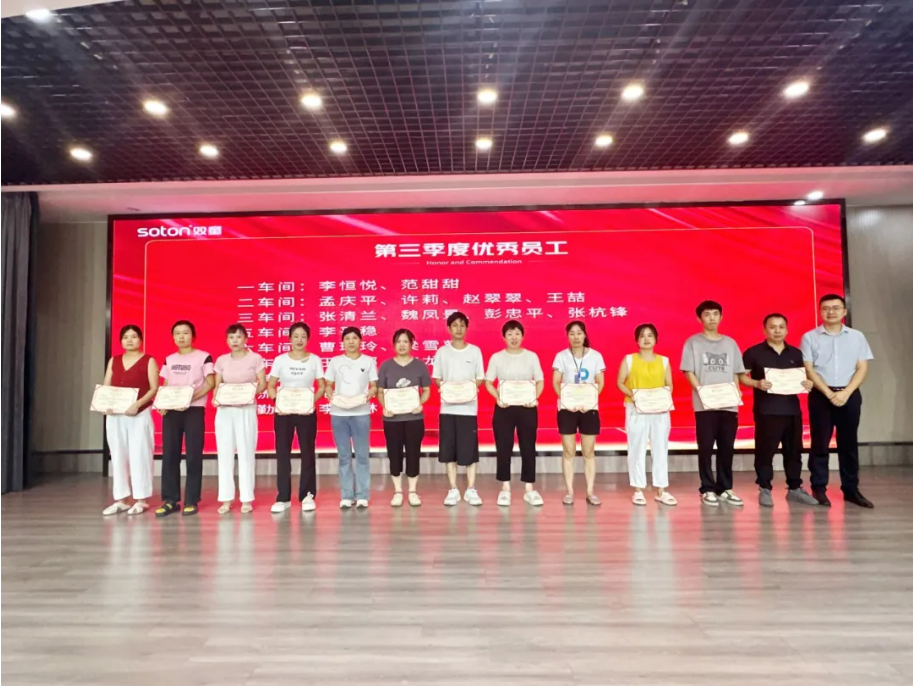 大會首項便是表彰2025年第三季度優(yōu)秀員工。經(jīng)層層評選,共有18位來自公司各崗位的杰出同仁脫穎而出,榮獲此項稱號。他們之中,既有扎根生產(chǎn)一線、精益求精的技術(shù)能手;也有堅守后勤崗位、默默耕耘的服務(wù)標(biāo)兵。雖崗位不同,職責(zé)各異,但他們都以同樣的匠心與熱忱,在平凡的日常中鑄就不凡,成為雙童奮斗者群像中閃亮的縮影。