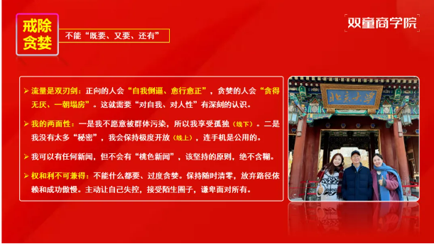 對(duì)于創(chuàng)業(yè)者而言,打造IP無需追求一蹴而就,縱向比較的成長(zhǎng)心態(tài)更為重要。不必與頭部網(wǎng)紅盲目攀比,5000粉絲就能獲得傳統(tǒng)渠道難以企及的信息與機(jī)會(huì);即便自身不擅長(zhǎng),也可培養(yǎng)員工組建團(tuán)隊(duì),逐步構(gòu)建企業(yè)IP矩陣。樓老師最后以思享薈學(xué)員王麗打造個(gè)人IP的案例作為結(jié)尾,點(diǎn)明IP打造的核心不是追求短期流量爆發(fā),而是通過長(zhǎng)期、真誠的價(jià)值傳遞,建立可持續(xù)的社會(huì)信任與商業(yè)影響力。
