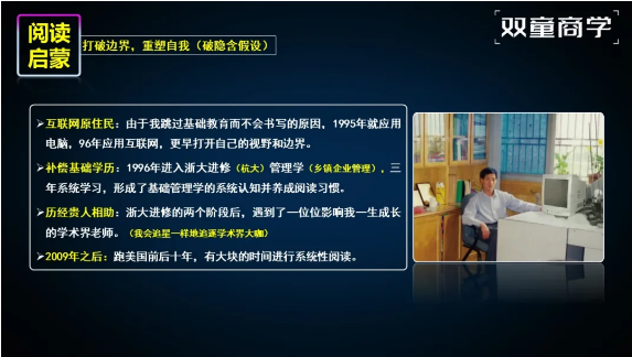 盡管基礎教育有所欠缺,他積極彌補知識短板:1995年啟用電腦,1996年接入互聯(lián)網(wǎng)開拓全球視野,同年進入浙江大學系統(tǒng)學習企業(yè)管理,構(gòu)建管理認知并養(yǎng)成閱讀習慣。此后,2009年起頻繁赴美的十年間,他通過深度閱讀實現(xiàn)了從碎片化學習到系統(tǒng)性思考的轉(zhuǎn)變。
