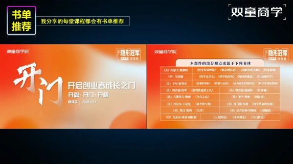 近期,雙童創(chuàng)始人樓仲平受邀出席“更新與答案:我的2025書單”總裁讀書會年終演講系列活動,與著名企業(yè)家寧高寧同臺,為參會嘉賓帶來年終大課的主題分享之一《答案:閱讀推動我創(chuàng)業(yè)成長》,結(jié)合自身創(chuàng)業(yè)實踐經(jīng)歷,分享了關(guān)于管理學、經(jīng)濟學、哲學、自然科學等方面的閱讀成長經(jīng)歷。