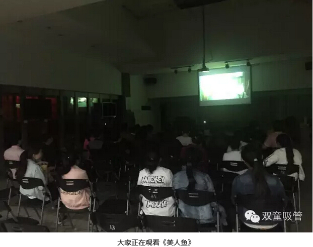 電影社團是今年3月剛剛成立的,不定期為員工們放映大片。這不,員工們觀看了《救火英雄》、《美人魚》、《絕地逃亡》等大片,自“雙童”影院成立后,員工們足不出戶就可以看電影啦!