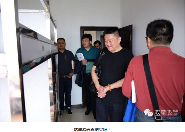 參觀員工寢室時(shí),當(dāng)家人樓總向大家介紹我們的寢室。每個(gè)房間都配有干凈整潔的洗手間、寬敞明亮的洗衣陽(yáng)臺(tái),并配有各種家具,每個(gè)房間安裝有空調(diào),24小時(shí)供應(yīng)熱水洗澡和純凈飲用系統(tǒng)。就連我們的不銹鋼床,都是我們自己設(shè)計(jì),在建造之初就已經(jīng)焊死在地上,防止員工發(fā)生安全事故的同時(shí),也最大程度上保證了寢室的整潔。