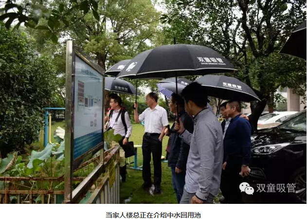 參觀的第一站,是我們的節(jié)能降耗系統(tǒng)。當(dāng)家人樓總向大家詳盡地講述了我們的中水回用系統(tǒng)、雨水收集系統(tǒng)、垃圾分類系統(tǒng)等各個設(shè)施的運(yùn)行原理。眾人對“雙童”這種生態(tài)循環(huán)、為社會節(jié)約資源的做法點(diǎn)了一個大大的贊,更對樓總多年前能有這樣的理念十分敬佩!