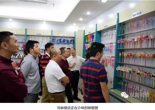 移步樣品房,當(dāng)家人樓總介紹了一系列他們從沒見過的創(chuàng)新吸管,讓他們驚訝的是,原來一根小小的吸管也可以有這么多的功能可以開發(fā)!