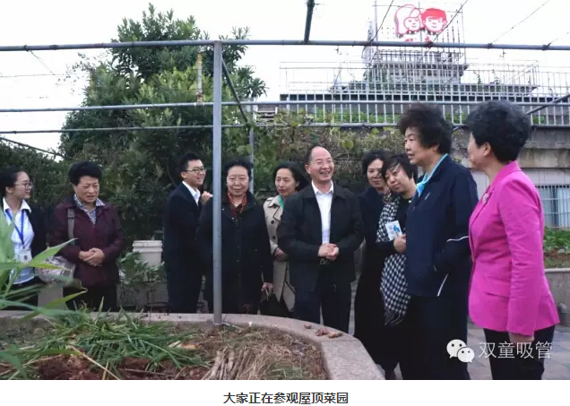 最后,大家來到“雙童”的屋頂菜園。大家立即被菜園子里的蔬菜吸引了,在工廠還有這么一片菜園子,實(shí)在令人贊嘆!聽到“空中菜園”有近800平方米的,每個(gè)種植區(qū)的土層均有1米2深,大家更是贊不絕口!