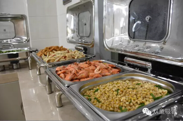 晚上7點半,壽星們走進由后勤科掛上氣球、貼上標語,稍微裝扮一下就顯得溫馨無比的食堂自助餐區(qū),看到實木的餐桌上擺上了瓜子花生,一旁柜臺上的自助餐盤里盛滿了豐盛的菜肴,酒水瓜果應有盡有,頓時眼睛里都放光?。∵€有什么好說的呢?開吃!??!