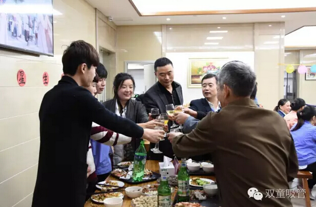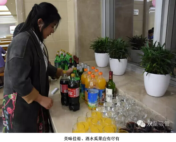 吃喝,吃喝,光吃不行還得喝!“酒水飲料”自然是調(diào)節(jié)氣氛的最佳,五星級食堂舉辦的第一次生日會,自然要幾位“五星級的領(lǐng)導”陪同!你看啊,各個車間的主要領(lǐng)導都來了??!他們的宗旨就是:一定要讓壽星們不光吃的好,還要喝的盡興!領(lǐng)導們端著酒杯笑嘻嘻的對每位壽星說:“沒事,喝嘛,喝醉了明天啥時候起來,啥時候上班!” 壽星們,你們還不趕緊放開了量,爭取也灌倒一兩位領(lǐng)導啊?。?!