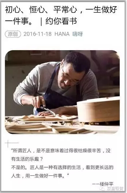 不是的。匠人是一種有選擇的生活,看到更長(zhǎng)遠(yuǎn)的人生,用一生做好一件事。