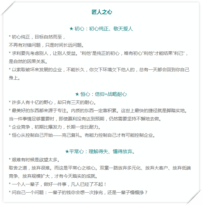 這兩年,匠人匠心這樣的字眼頻頻出現(xiàn)。樓總說(shuō),社會(huì)發(fā)展逐漸在回歸商業(yè)本質(zhì)和常理,一顆顆浮躁而懸浮的心開(kāi)始慢慢沉下來(lái)。