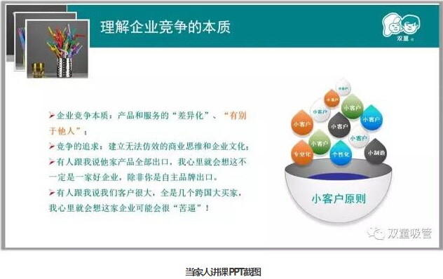 其實(shí)真正把自己的產(chǎn)品做好了,企業(yè)在一定時(shí)候擴(kuò)大規(guī)模才是自然而至的,因此不要一畏地想著大,適當(dāng)做減法,寧可盈利不作大,不可做大不盈利!“雙童”的發(fā)展始終伴隨著不斷的放棄,在自己的領(lǐng)域里細(xì)分細(xì)分再細(xì)分,把一根吸管做到極致!