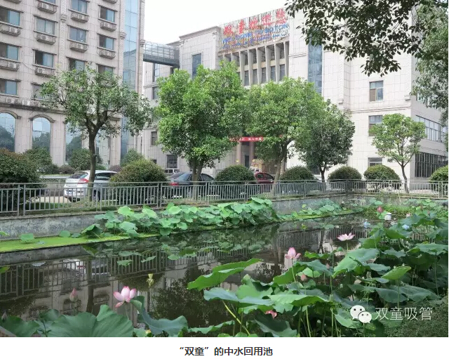 2003年,“雙童”在建設(shè)雨水收集系統(tǒng)的同時(shí)著力于消滅污染和降低排放,又建設(shè)了廢水收集處理及中水回用系統(tǒng),將所有的廢水進(jìn)行集中處理,并儲(chǔ)存?zhèn)溆?。處理好的中水通過專用管道供應(yīng)給所有員工寢室衛(wèi)生間內(nèi)的抽水馬桶、屋頂綠化、綠化噴淋和道路清洗。
