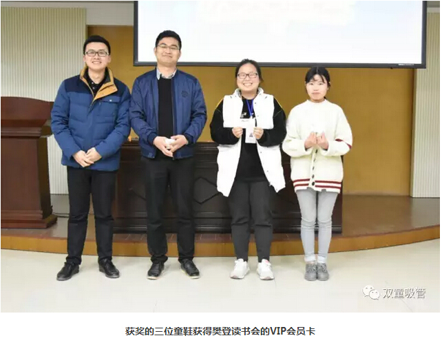 昨晚7點整,“雙童”行政人員的學習會在九樓閣準時召開。與其說這是一場學習會,還不如說是一場學習分享會呢!在分享會開始之前,我們也進行了隆重的頒獎儀式,為上一場讀書分享會中獲獎的三位童鞋頒發(fā)了樊登讀書會一年的VIP會員卡,以此學習到更多的知識!