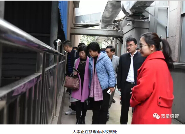 參觀的第一站,是我們的節(jié)能降耗系統(tǒng)。大家一起參觀了雨水收集處、垃圾分類站等地。參觀到我們的中水回用池過濾系統(tǒng)時,在看到地面上的一塊塊“玻璃”后,大家都十分好奇。吸管妞介紹道:“其實(shí),這下面埋著的是過濾芯,用來過濾廢水,是廢水循環(huán)過程中的一個步驟。” 大家聽后,對“雙童”這種生態(tài)循環(huán)的做法都十分認(rèn)可!