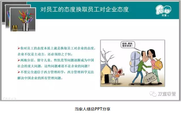 一開場,大家對“雙童”的“家文化”很感興趣!當(dāng)家人樓總首先和大家介紹了“家文化”在“雙童”的應(yīng)用及實(shí)踐效益。“家”是員工最大的牽掛,解決了員工的問題,他們才能全身心投入到工作當(dāng)中,人心管理就是企業(yè)生態(tài)系統(tǒng)的改善。“雙童”明確把“家文化”作為員工管理的著力點(diǎn),以“小家”形成“大家”,凝聚團(tuán)隊“人心”!