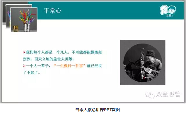 所以,當(dāng)家人樓總一直告誡大家,做人一定要有平常心。做企業(yè)有時(shí)候需要理解“舍得”、懂得“放棄”!很多企業(yè)主的痛苦不是你獲得的太少,而是想要的太多!