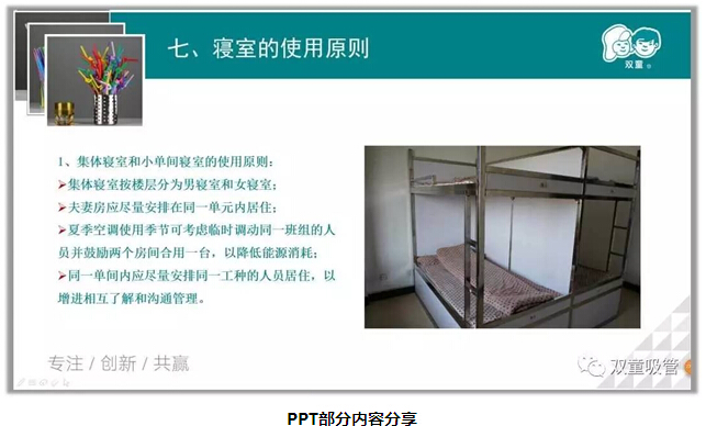 張講師一開場(chǎng)就介紹了各類寢室的配置及安排補(bǔ)貼原則。瞧瞧!員工們聽得多認(rèn)真呀!一到了問答環(huán)節(jié),個(gè)個(gè)都很積極呢,公司的寢室分為哪幾種?具體又是怎么安排分配的?員工們都對(duì)答如流,直呼咱們“雙童”的居住環(huán)境真的很棒!是呀,“雙童”的寢室建立之初就按照三星級(jí)酒店的標(biāo)準(zhǔn)裝修,讓員工們能夠住的開心住的舒心!