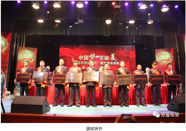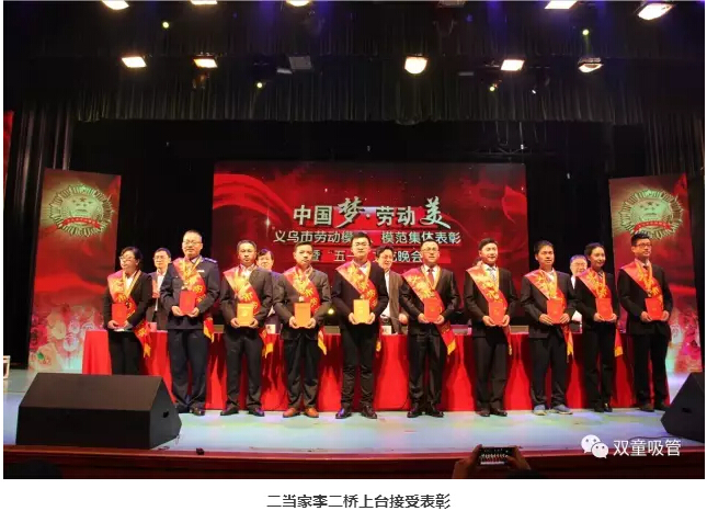 在義烏市長林毅發(fā)表講話之后,副市長施文臻宣讀了義烏市勞動模范、模范集體名單,各勞動模范及模范單位代表上臺接受表彰!這其中也包括了我們的二當家李二橋呢!