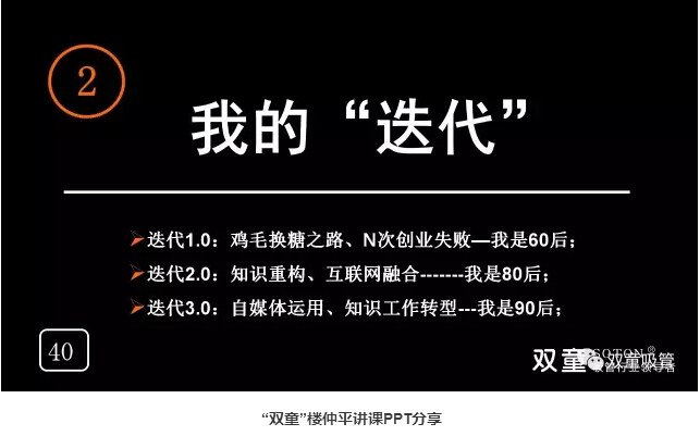 我的“迭代”:“雙童”樓仲平通過自身不斷的學(xué)習(xí):在浙大學(xué)習(xí)進修、學(xué)習(xí)電腦設(shè)計,認知到自媒體作用,與年輕人鏈接、培養(yǎng)團隊,自己轉(zhuǎn)變教育工作……不斷否認自我、重新認知,實現(xiàn)迭代!