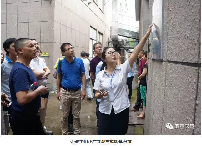 參觀的第一站是我們的節(jié)能降耗系統(tǒng)!吸管妞向大家詳盡地介紹了廢水回用系統(tǒng)、雨水收集系統(tǒng)、垃圾分類系統(tǒng),光光是雨水收集系統(tǒng),每年就能為“雙童”節(jié)約100萬(wàn)水費(fèi)呢!企業(yè)主們對(duì)“雙童”這種生態(tài)循環(huán)、節(jié)約資源的做法十分認(rèn)可,更對(duì)樓總多年前能有這樣的環(huán)保理念十分敬佩!