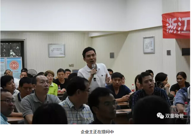 參觀結(jié)束后,大家來(lái)到了九樓閣,與“雙童”樓仲平進(jìn)行深入交流。樓仲平和大家分享了“雙童”管理心得。實(shí)地游訪“雙童”后,企業(yè)主們也有不少問(wèn)題和樓總互動(dòng)。接下來(lái),吸管妞就向大家分享現(xiàn)場(chǎng)的精彩問(wèn)答語(yǔ)錄吧!