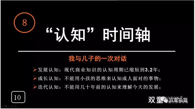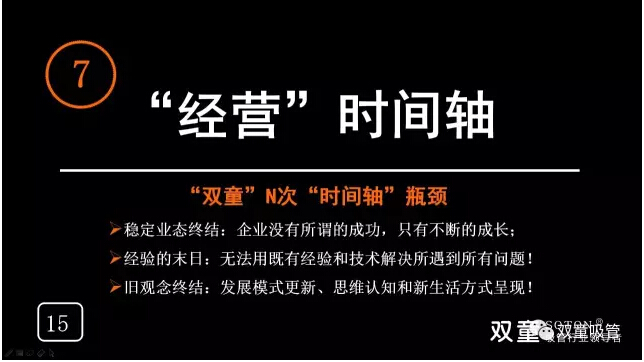 “但僅僅在學(xué)校學(xué)習(xí)是不夠的,我們這個(gè)時(shí)代面臨著高速發(fā)展、變更和迭代。在這個(gè)時(shí)代下存在著認(rèn)知時(shí)間軸,你昨天認(rèn)為對(duì)的東西,今天其實(shí)正在改變,現(xiàn)在商業(yè)知識(shí)的周期是3.2年,也就是3.2年以前的商業(yè)知識(shí)就已經(jīng)沒(méi)用了,如果你要著力于你的企業(yè)不被淘汰,你就必要終身學(xué)習(xí)。還有一點(diǎn)就是經(jīng)營(yíng)時(shí)間軸,許多企業(yè)剛開(kāi)始很成功,到后來(lái)卻越來(lái)越難生存下去,會(huì)遇到瓶頸和“天花板”。企業(yè)沒(méi)有所謂的成功,只有不斷的成長(zhǎng),我們無(wú)法用既有經(jīng)驗(yàn)和技術(shù)解決所遇到的所有問(wèn)題!”