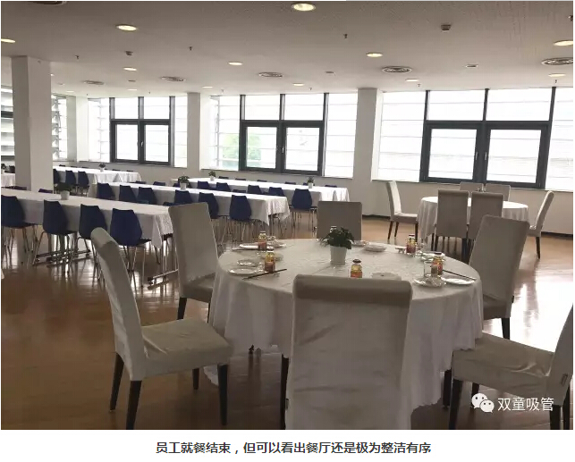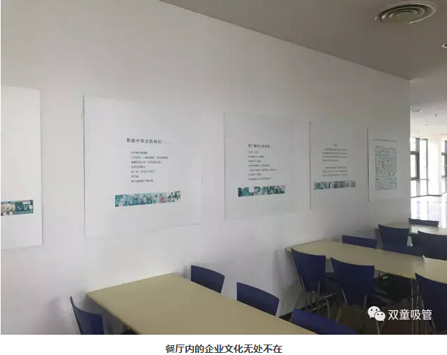 在參觀完文化展區(qū)和產(chǎn)品展區(qū)之后,時(shí)間已經(jīng)到12點(diǎn)半,“雙童”樓仲平和李二橋來到了員工餐廳,體驗(yàn)菲尼克斯飲食文化。雖然由于時(shí)間關(guān)系,我們沒有看到員工們用餐的情景,但是通過餐廳簡潔有序、明快的擺設(shè)風(fēng)格、無處不在的文化標(biāo)語,也能看出菲尼克斯獨(dú)特的人文精神和企業(yè)文化。