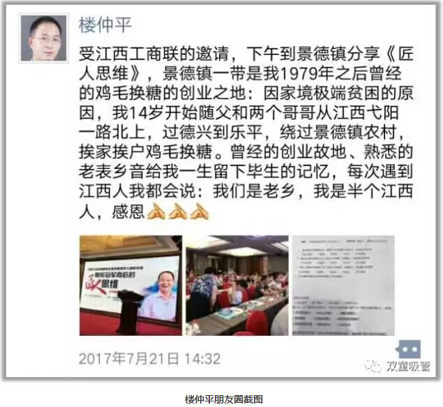 在工商聯(lián)史主席以及財(cái)智名家論壇的余秘書長(zhǎng)簡(jiǎn)短的開(kāi)場(chǎng)介紹后,“雙童”樓仲平也開(kāi)始了分享。一開(kāi)場(chǎng),樓仲平表明自己對(duì)江西景德鎮(zhèn)有著一種特殊的情懷。因?yàn)闃侵倨降耐陼r(shí)期在弋陽(yáng)度過(guò),創(chuàng)業(yè)后在江西景德鎮(zhèn)‘雞毛換糖’,前后在江西呆了十幾年,乃至于現(xiàn)在每次碰到江西人,樓仲平都會(huì)親切地與他打招呼,并主動(dòng)介紹自己也是“半個(gè)江西人”。現(xiàn)在樓仲平每次受邀到江西分享都覺(jué)得是回到了自己的第二故鄉(xiāng),也很感恩能將自己的認(rèn)知分享給江西的創(chuàng)業(yè)者們!