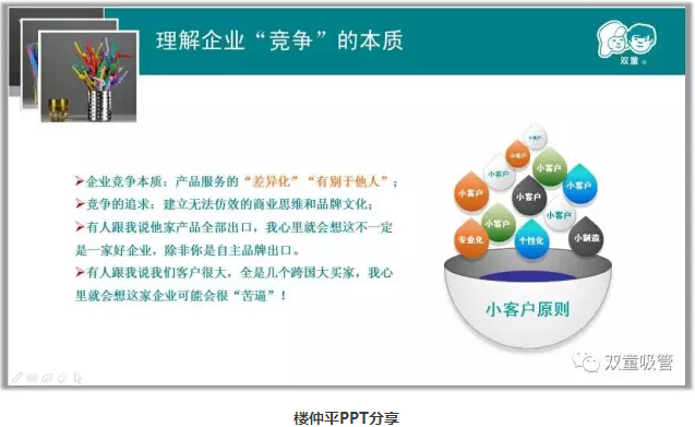 最后,樓仲平也分享道:其實(shí)真正把自己的產(chǎn)品做好了,企業(yè)在一定時(shí)候擴(kuò)大規(guī)模才是自然而至的,因此不要一味地想著大,要學(xué)會(huì)適當(dāng)做減法。“雙童”的發(fā)展始終伴隨著不斷的放棄,在自己的領(lǐng)域里細(xì)分細(xì)分再細(xì)分,把一根吸管做到極致!