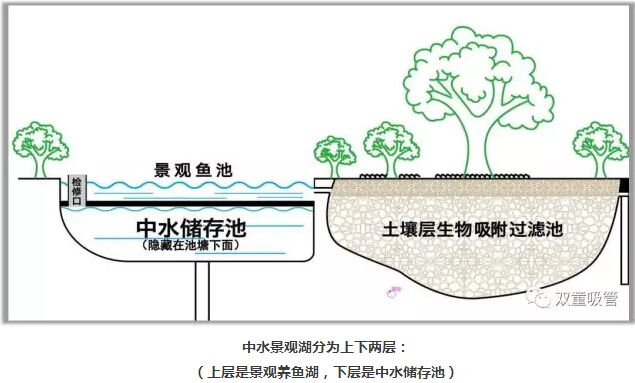 現(xiàn)在,改造后的中水景觀湖分為兩層,上層是一米多深的景觀養(yǎng)魚湖,下層是四米五深的中水儲存池,專門用于儲存廢水呢!
