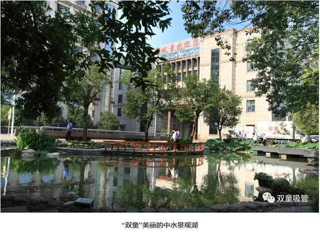 “雙童”人最喜歡駐足停留的便是行政樓前的中水景觀湖了,景觀湖將樹木、花朵、小橋、流水融合在一起,一旁的樹木搖曳風(fēng)姿,湖水在陽光的照耀下顯得格外美麗!