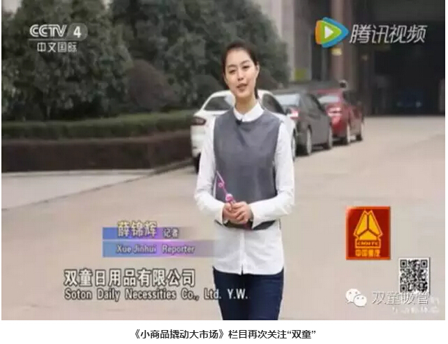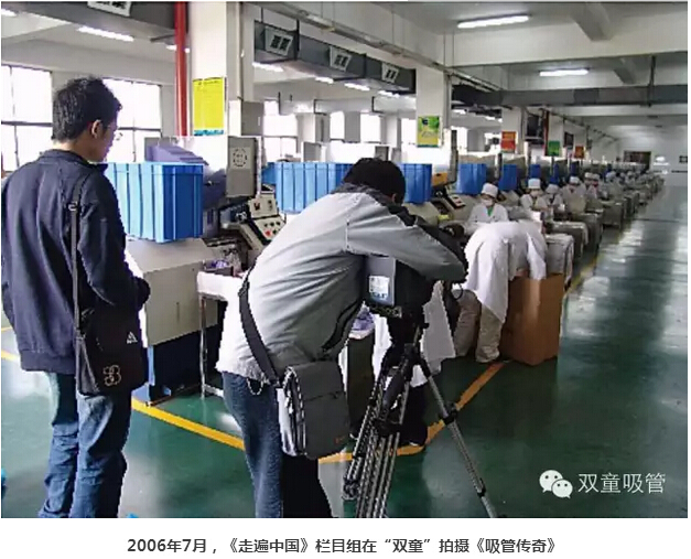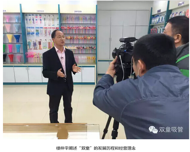 而到了2016年,《走遍中國》欄目再次走進義烏!《走遍中國》欄目以哈敏導演為首的四人攝制組先后四次走進“雙童”,用兩臺輕巧的小機器累計拍攝了兩天的鏡頭。節(jié)目導言如此介紹:義烏小商品在許多人眼里曾是低端的代名詞,但經(jīng)過二三十年的市場發(fā)展,義烏小商品已從初創(chuàng)時期的迎合時尚,發(fā)展到今天開始引領時尚。而其實義烏小商品一直在創(chuàng)新,“雙童”就是一個典型的例子。20年專注做一根吸管,全球210幾項的吸管專利,170項左右專利在“雙童”。一支支創(chuàng)意十足的創(chuàng)新吸管吸足了眼球。而“雙童吸管”經(jīng)過十年的發(fā)展,從當年的“全球最大吸管廠”成長為現(xiàn)在力求“全球吸管行業(yè)領導者”,到底背后有什么故事呢?這一點實在是值得拍成片子,給全國的觀眾朋友們看看!