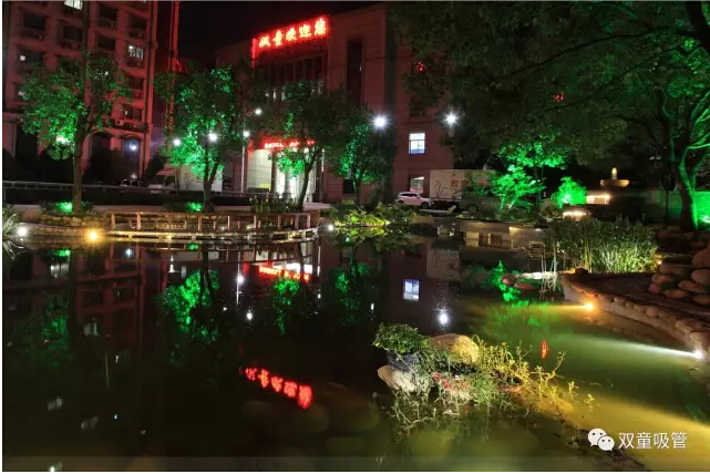 當(dāng)夜幕降臨,走在鑲嵌在地面上的鵝卵石小徑上,掩映在綠樹成蔭下的路燈也是美麗極了!夜色初上,朦朦朧朧的淡淡燈光,與月色交相輝映,夜幕下的“雙童”也別有一番風(fēng)味!