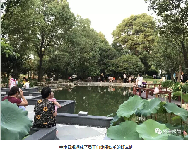 “雙童”人最喜歡駐足停留的便是行政樓前的中水景觀湖了,景觀湖將樹木、花朵、小橋、流水融合在一起,一旁的樹木搖曳風(fēng)姿,湖水在陽光的照耀下顯得格外美麗!