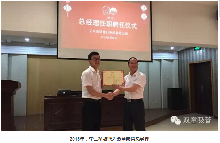 “當(dāng)時,我就明確提出,李二橋,不僅是CEO,將來干得好也可能是公司的接班人。他是農(nóng)村小伙,2001年初中畢業(yè)后到‘雙童’做操作工。他是我在十五年的時間里一步步‘帶’出來的。選擇李二橋做總經(jīng)理,我是經(jīng)過長時間考量,尤其那4年,他跟我一個辦公室,我?guī)缀跆焯煸谟^察、了解這個小伙子。他勤奮、踏實、懂技術(shù),在公司任勞任怨,從未計較個人的眼前利益,這一點(diǎn)非常難能可貴,我覺得將來把企業(yè)交給這樣的人,放心。”