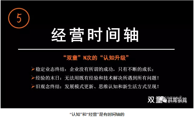 樓仲平也用“雙童”的發(fā)展史告訴大家經營也是有時間軸的,會遇到各種瓶頸和每個階段的“天花板”。企業(yè)沒有所謂的成功,只有不斷的成長,我們無法用既有經驗和技術解決所遇到所有問題!