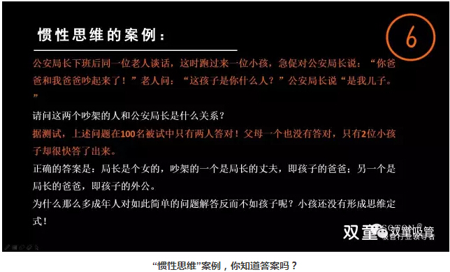 據測試,上述問題在100名被試中只有兩人答對!父母一個也沒有答對,只有2位小孩子卻很快答了出來。
