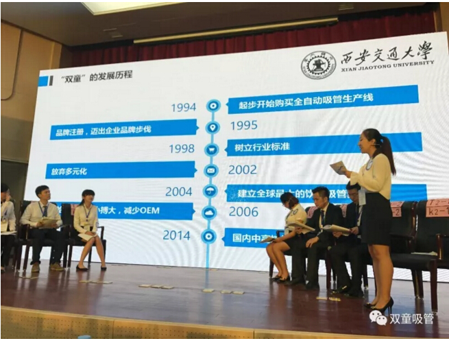 據(jù)了解,組委會(huì)在挑選總決賽案例素材時(shí),更傾向于挑選具有時(shí)代背景、可評(píng)價(jià)性和標(biāo)桿性的案例,他們希望通過對(duì)該案例的分析,引導(dǎo)大學(xué)生對(duì)企業(yè)商業(yè)模式和核心競爭力的認(rèn)知,加深在時(shí)代背景下對(duì)制造業(yè)的認(rèn)知。在挑選過程中,他們一致認(rèn)為“雙童吸管”案例最符合他們的期望,而且該案例還是2016年全國百優(yōu)案例中較突出的案例。所以,這也是“雙童”樓仲平被邀請(qǐng)擔(dān)任此次大賽評(píng)委的原因之一。