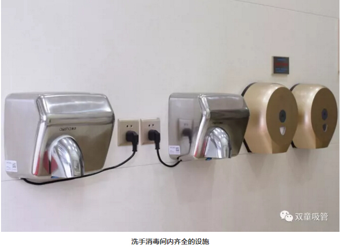 4、整理完衣物后,來到洗手消毒間,進(jìn)行洗手、烘干、消毒。
