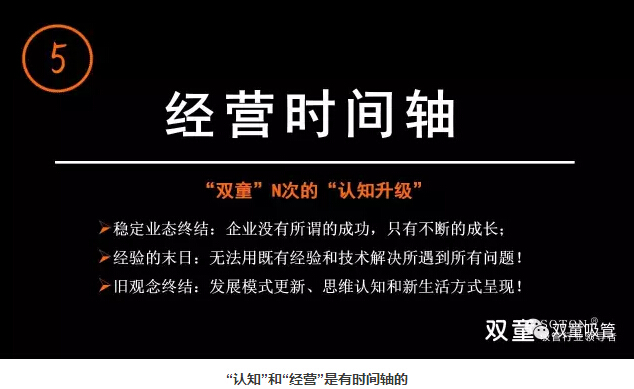 樓仲平也用“雙童”的發(fā)展史告訴大家經(jīng)營(yíng)也是有時(shí)間軸的,會(huì)遇到各種瓶頸和每個(gè)階段的“天花板”。企業(yè)沒(méi)有所謂的成功,只有不斷的成長(zhǎng),我們無(wú)法用既有經(jīng)驗(yàn)和技術(shù)解決所遇到所有問(wèn)題!