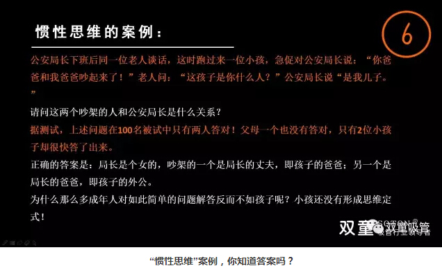 據(jù)測(cè)試,上述問(wèn)題在100名被試中只有兩人答對(duì)!父母一個(gè)也沒(méi)有答對(duì),只有2位小孩子卻很快答了出來(lái)。