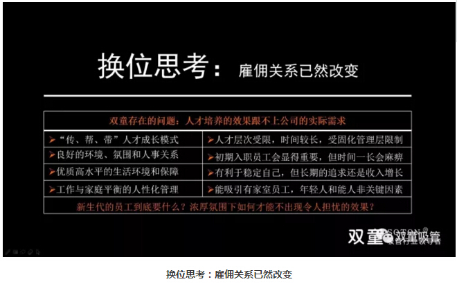洞察巨變,從“指令”到“對話”:樓仲平通過總經(jīng)理李二橋以及吸管妞周上的案例分享了新時代背景下雇傭關(guān)系已然改變。