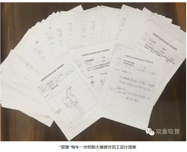 除此之外,“雙童”動員內部全體員工進行思維創(chuàng)新,在公司舉行吸管創(chuàng)新大賽。在大賽中,員工們提交的作品在外觀上的創(chuàng)新、功能及使用方式創(chuàng)新都十分吸人眼球,也進一步推動了企業(yè)的創(chuàng)新工作。另一方面,在內部協(xié)作取得一定成果后,“雙童”陸續(xù)與浙江師范大學、北京服裝大學、中國塑料工業(yè)研究所等機構建立長期合作,從而逐步了形成規(guī)范的創(chuàng)意引導、征集、篩選、評價、激勵、開發(fā)和商業(yè)推廣等創(chuàng)新工作機制,逐漸形成了規(guī)范的研發(fā)性低成本創(chuàng)新之路!