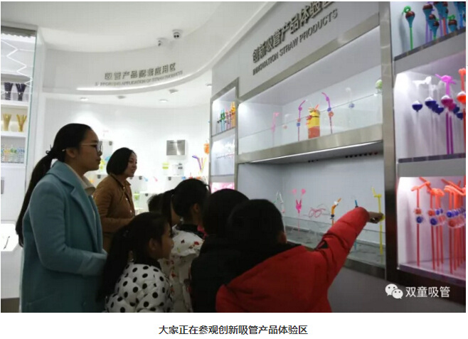 最后,大家來到了“雙童”產(chǎn)品的展示區(qū),風車吸管、哈哈吸管、愛心吸管、party吸管、藝術(shù)吸管……“雙童”生產(chǎn)的上百個品類的吸管也讓參觀團們震撼不已!