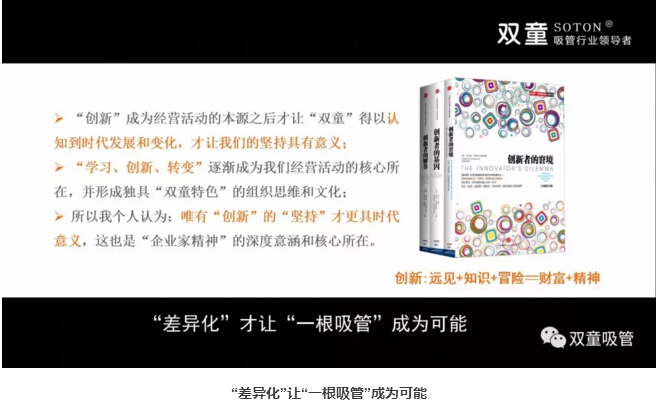 樓仲平也分享了“雙童”在發(fā)展歷程中經(jīng)歷的小客戶(hù)原則、“兩條腿走路”戰(zhàn)略及“雙童”的“創(chuàng)新之樹(shù)”,學(xué)習(xí)、創(chuàng)新、轉(zhuǎn)變逐漸成為“雙童”經(jīng)營(yíng)活動(dòng)的核心所在,并形成獨(dú)具“雙童特色”的組織思維和文化!
