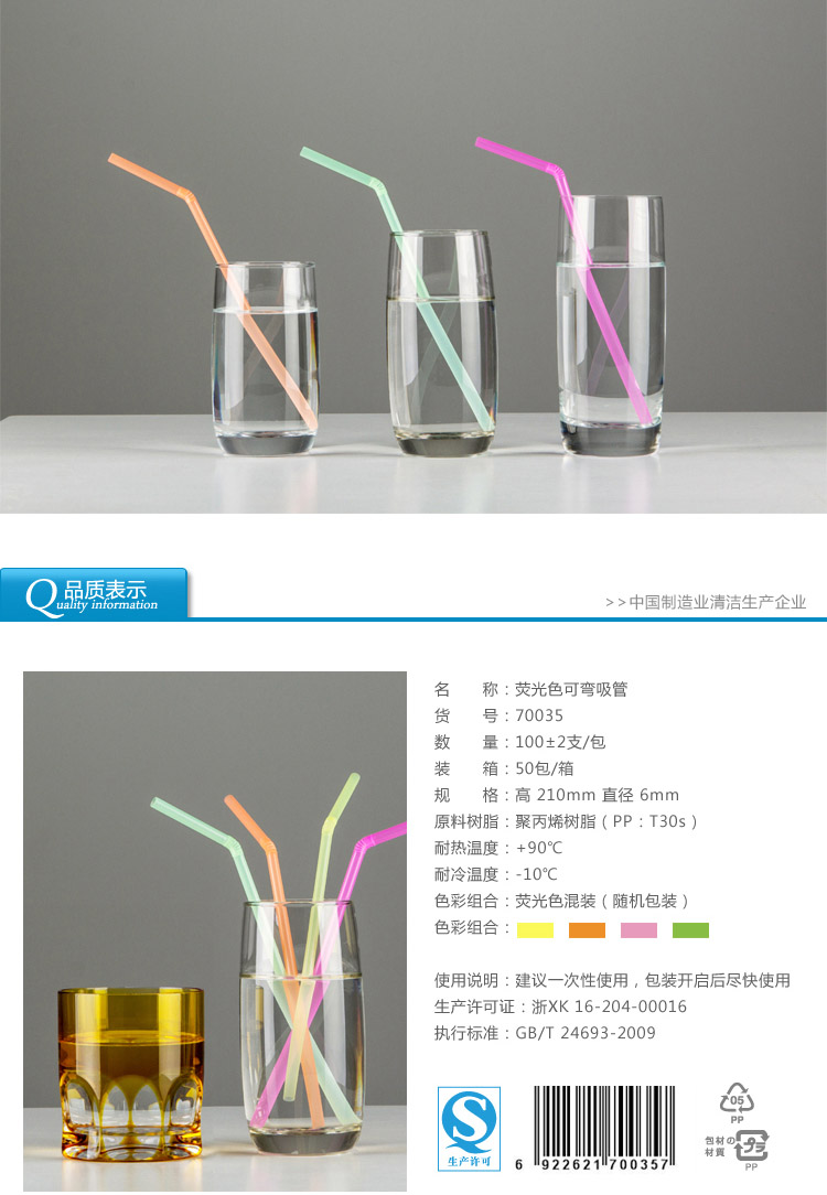 70035雙童100支熒光色家庭裝彎吸管